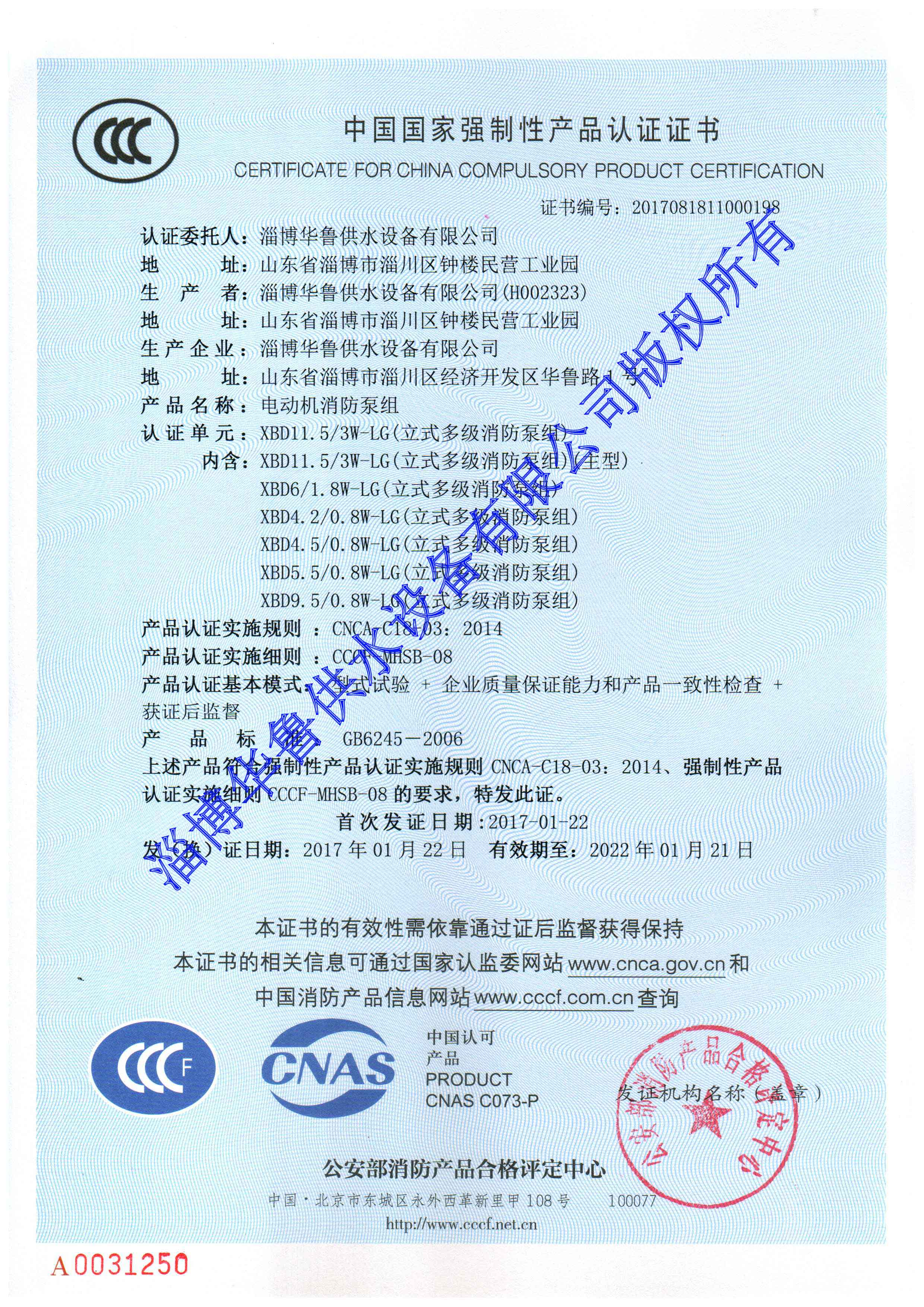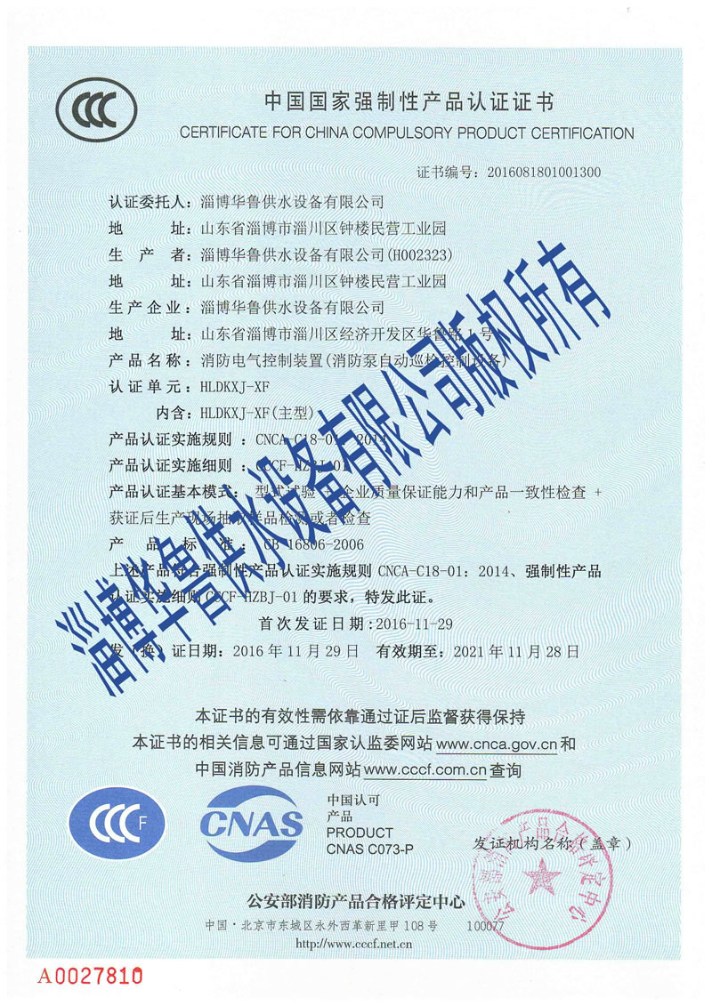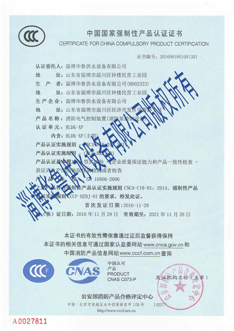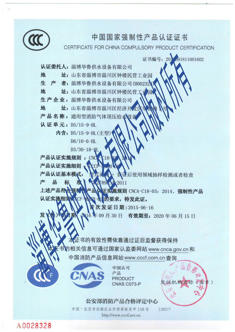 消防增壓穩壓CCC證書(shū) 更多詳情>
