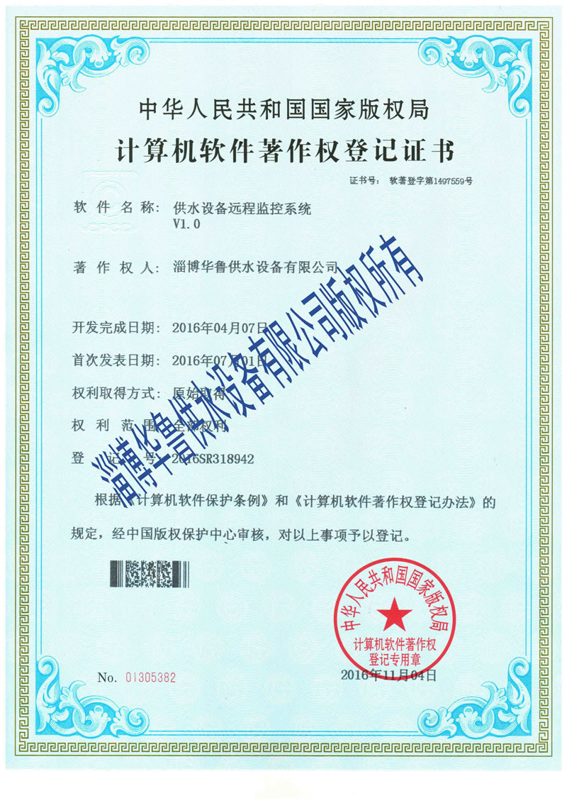 變頻供水軟件專(zhuān)利證書(shū) 更多詳情>